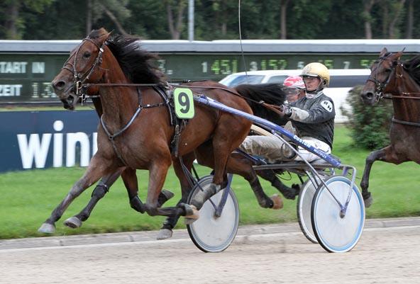 Deutlich klarer scheinen die Verhältnisse in einem weiteren Lauf der Stutenserie, in dem Goldhelm Roland Hülskath mit Adel Buitenzorg das zu schlagende Pferd aufbietet. Den beiden könnte eigentlich nur eine in Bestform antretende Novelune Rex (Jens-Holger Schwarma) gefährlich werden. Gleich danach steht auch You L Limburgia (Maria de Bruyn) etwas über dem Rest des Feldes, so dass man diesem Gespann sogar den Status Tipp des Tages geben kann.