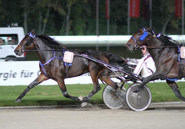 Großen Spaß machten die sechs PMU-Rennen am Freitag Abend auf der Gelsenkirchener Trabrennbahn. Hohe Rennpreise lockten etliche Cracks ins Revier, die die in sie gesetzten Erwartungen zum größten Teil erfüllen konnten. So auch im Hauptrennen, das mit 7.300 Euro dotiert war und 14 Pferde mit Gewinnsummen bis 100.000 Euro vereinte.