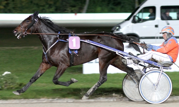 Den Vorteil der Nummer ‚1’ konnte Blue Bonnets nutzen und sich gleich nach dem Start die Führung sichern. Dahinter waren Speedy Trader mit Cees Kamminga (45/Willemsoord, NL), Bon Jovi Eden und Onice Axe zu sehen.